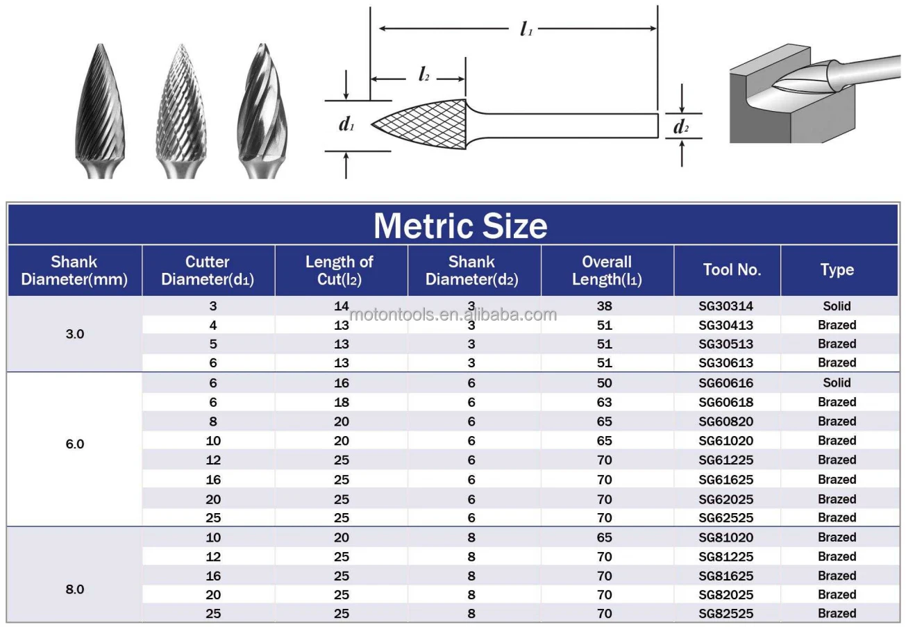 Carbide rotary burr are extremely versatile and are used in mold processing and manufacturing, chamfering, rounding and groove processing of mechanical parts, cleaning flash, burrs and welds of castings, forgings and weldments, Finishing processing of pipes and impeller flow channels, arts and crafts engraving of metal and non-metal materials (bone, jade, stone)